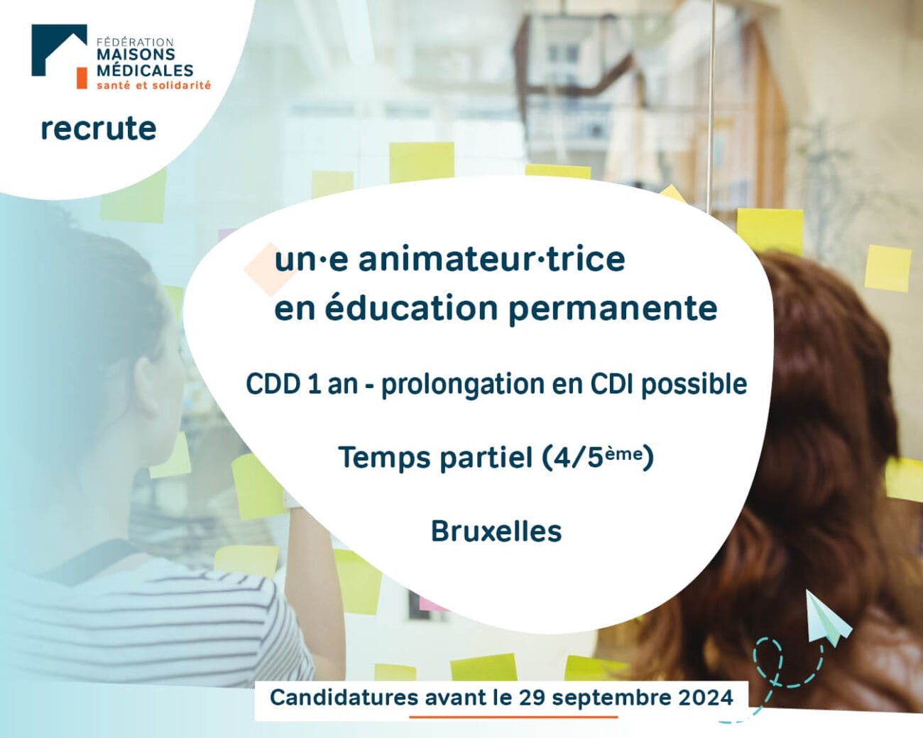 Afin de renforcer son équipe, la Fédération des maisons médicales recrute un·e animateur·trice en éducation permanente (CDD d’un an en…