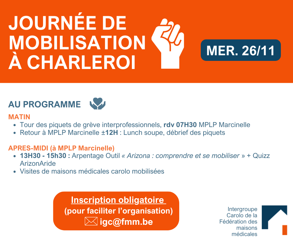 Charleroi. Les maisons médicales carolos organisent une journée de mobilisation, allez voir le programme ici.